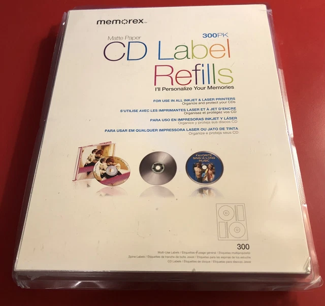 Amazon.com: Memorex Cd Labels BESTeck 200 Memorex Compatible CD/DVD Labels. Large Center Style. 200 Total Labels with Spine and Case Labels. Compare to Matte Finish Memorex Labels. Works in Both Laser and Ink Jet Printers. 4.5 (182) $1595 ($0.08/Count) FREE delivery Mar 10 - 16 Or fastest delivery Mar 7 - 8 20-Labels White Photo Gloss CD Labels 1440dpi for Inkjets 4.5 (135)
