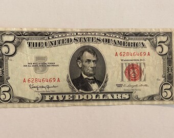 Five Dollar Bill Red Seal Series 1963 US Currency - $8.99 These notes are Series 1963. Each bill comes in a currency sleeve for protection. These Red Seal Five Dollar Bills will make a nice addition to any currency collection! Information on these Red Seal Series 1963 Five Dollar Bills: In 1929 all US Currency was changed to its current modern size. The $5 bill was kept as a United States Legal Tender ...