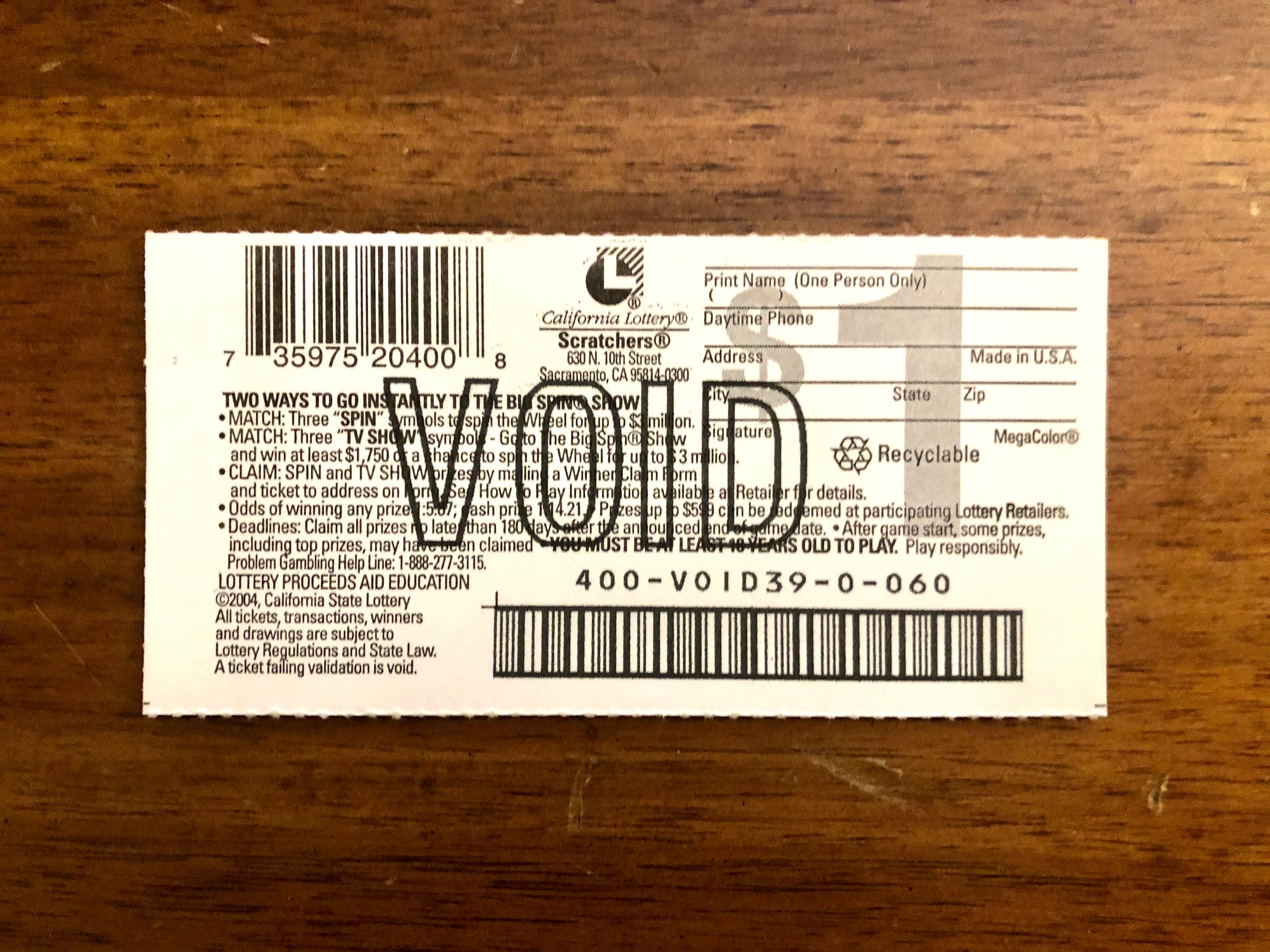 Buy Unused the Big Spin California Lottery Scratcher / Voided ...