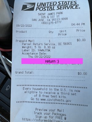 Address: NONE, PARCEL RETURN SERVICE, DC 56901-0000, USA ...
