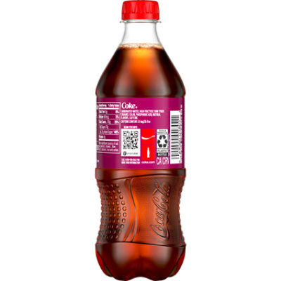 Cherry Coca-Cola, 20 oz Calories, Carbs & Nutrition Facts | MyFitnessPal Find calories, carbs, and nutritional contents for Cherry Coca-Cola, 20 oz and over 2,000,000 other foods at MyFitnessPal Calories in 20 oz Cherry Coca Cola from Duchess Shoppe 20 oz Cherry Coca Cola Duchess Shoppe Nutrition Facts Serving Size: fl oz Amount Per Serving Calories 260 Calories from Fat 0 % Daily Value* Total Fat 0g 0 % Saturated Fat 0g 0 % Trans Fat 0g Cholesterol 0mg 0 % Sodium 70mg 3 % Total Carbohydrates 70g 23 % Dietary Fiber 0g 0 % Sugars 70g Protein 0g 0% Vitamin A 0% Vitamin C 0% Calcium 0% Iron Coca-Cola® Cherry | Coca-Cola® Cherry soda just got a new look with Coca-Cola® Cherry. Try this sweet cola drink today, available for purchase in stores and online! ... 12 fl oz, 12 Pack . 7.5 fl oz, 6 Pack . 16.9 fl oz, 6 Pack ... After select the vendor the page will be reloaded. BUY NOW. Walmart ToGo. Amazon Fresh. Amazon Prime Now. VIEW NUTRITION FACTS. Details. Enjoy ...
