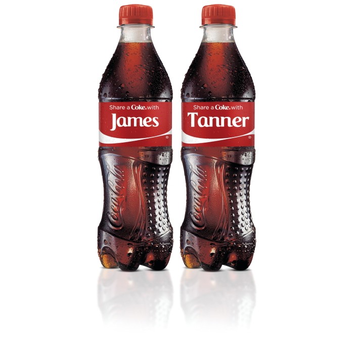 How to Order a Customized Coca Cola Bottle: 15 Steps Steps 1 Go to cokestore.com.Your screen should look somewhat like the image above. 2 Click on "Shop Now". 3 Scroll down to find the style you want and click "Shop Now" under it. 4 Type your message in the bar that says "Enter any name or phrase up to 18 characters". Click "Preview" next to it to see how it's going to look. Now everyone can get their name on a Coke can - thetakeout.com But now Coca-Cola has taken pity on those of us who don't have names in the top 100. At least in Australia. This is part of Coke's Share a Coke campaign, which in past years put the most popular names on Coke bottles to make them more personal. "This year," writes the website Freedays, "the names celebrate the diversity of the Aussie ... Personalized Coke Bottle - Etsy 4 x Personalised Coca Cola330ml Bottle Labels - Party Favour - Cola Gift - Any Names - Christmas / Birthday / Wedding / Eid Mubarak 4.5 out of 5 stars (139) ... Personalized Coca Cola Label, Coke Bottle, Coke Label, Custom Pop Label, Pdf, Printable Pop Label, Coca Cola, Soda Label, Soda Pop, DIY